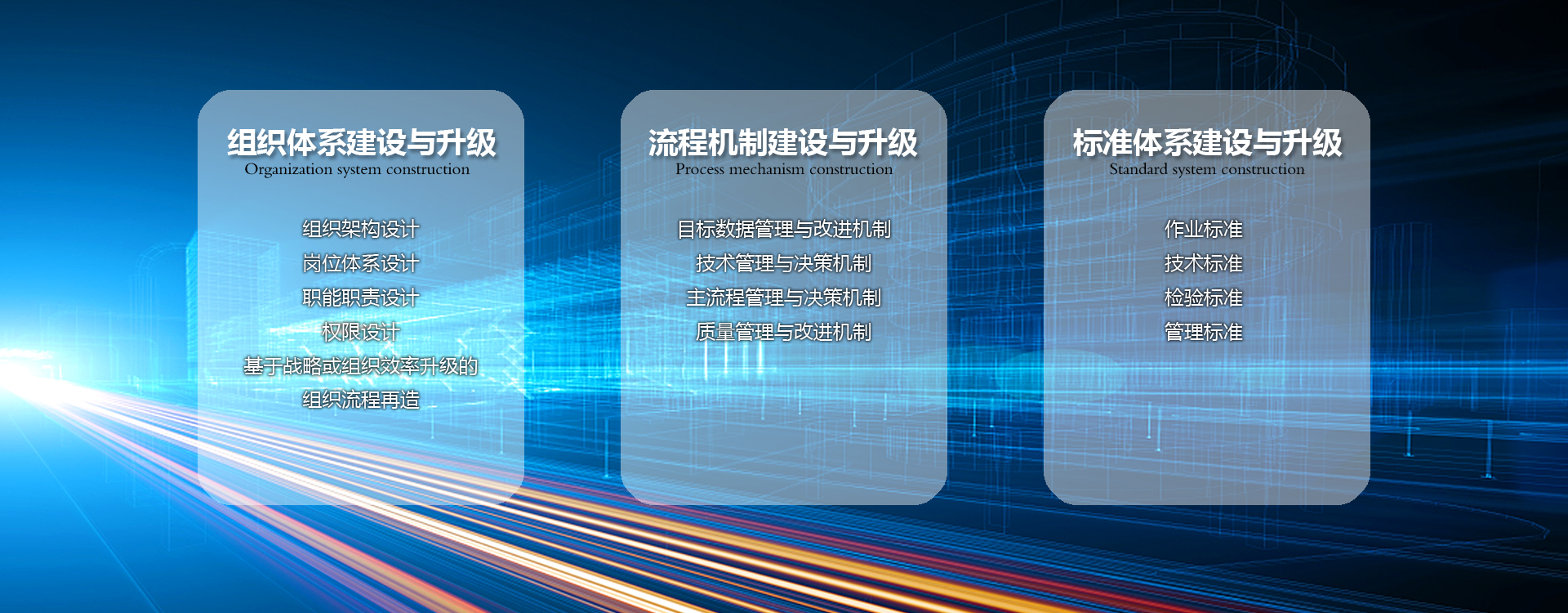 企業管理系統建設主要包括:組織體系建設、流程體系建設、標準體系建設。組織體系解決誰來干的問題,流程體系解決怎么干的問題,標準體系解決干到什么程度的問題。